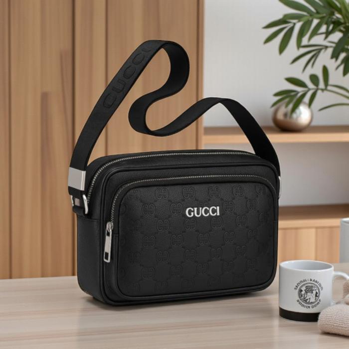 স্টাইল, মান আর আরামের এক অসাধারণ মিশ্রণ GUCCI প্রিমিয়াম ব্ল্যাক লেদার সাইড ব্যাগ — GUCCI মানেই লাক্সারি, রুচিশীলতা আর নিখুঁত ডিজাইন- দেখতে এলিগ্যান্ট, ব্যবহারেও টেকসই,আর হাতে নিলেই বোঝা যায়, এটি কোনো সাধারণ ব্যাগ নয়। কালো রঙের এই ব্যাগটির পুরো বডিতে আছে GUCCI-র খোদাই করা ক্লাসিক ডিজাইন, যা একসাথে দেবে স্টাইলিশ ও প্রফেশনাল লুক।